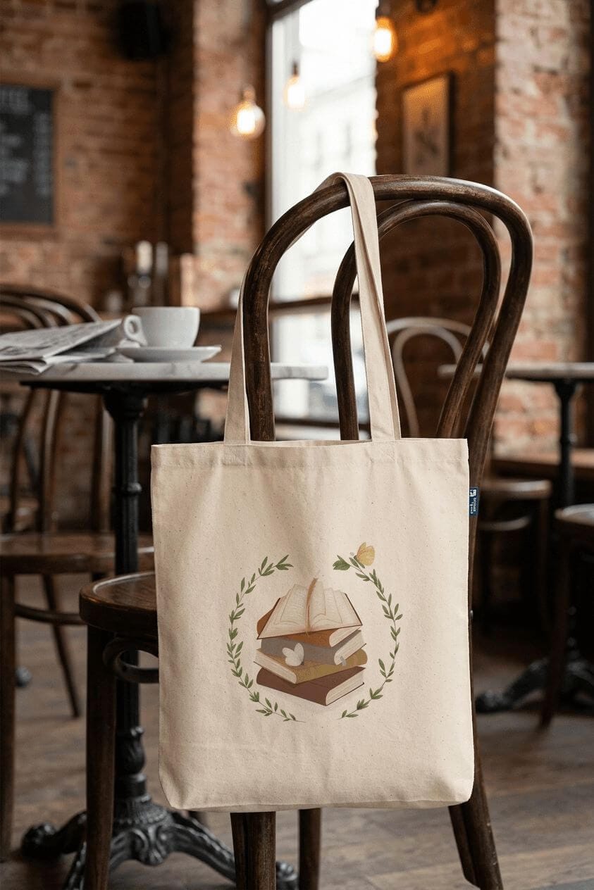 Imprimeu: Vizualul este realizat de Bianca Anton, ilustrator care a dat naștere brandului Maruki ART, un brand 100% românesc, menit să aducă mai mult ludic în viața noastră. Grafica cu cărți este imprimată prin transfer termic pe sacoșele noastre.